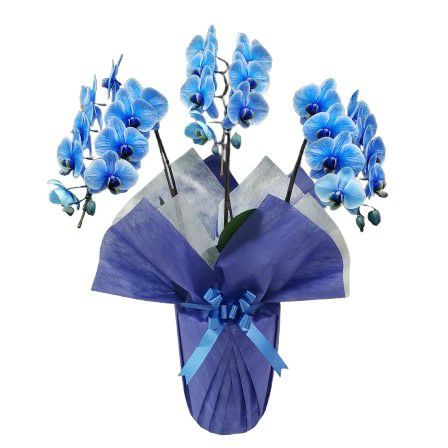 特殊な技術で染め上げた胡蝶蘭 ギフト対応商品 開店祝い 誕生日 送料無料 胡蝶蘭 ミディ ブルーエレガンス 青 3本立ち 27輪以上