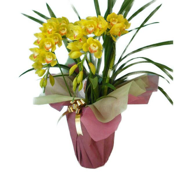 送料無料 シンビジューム イエロー アーチ 2本立ち ラッピング付き