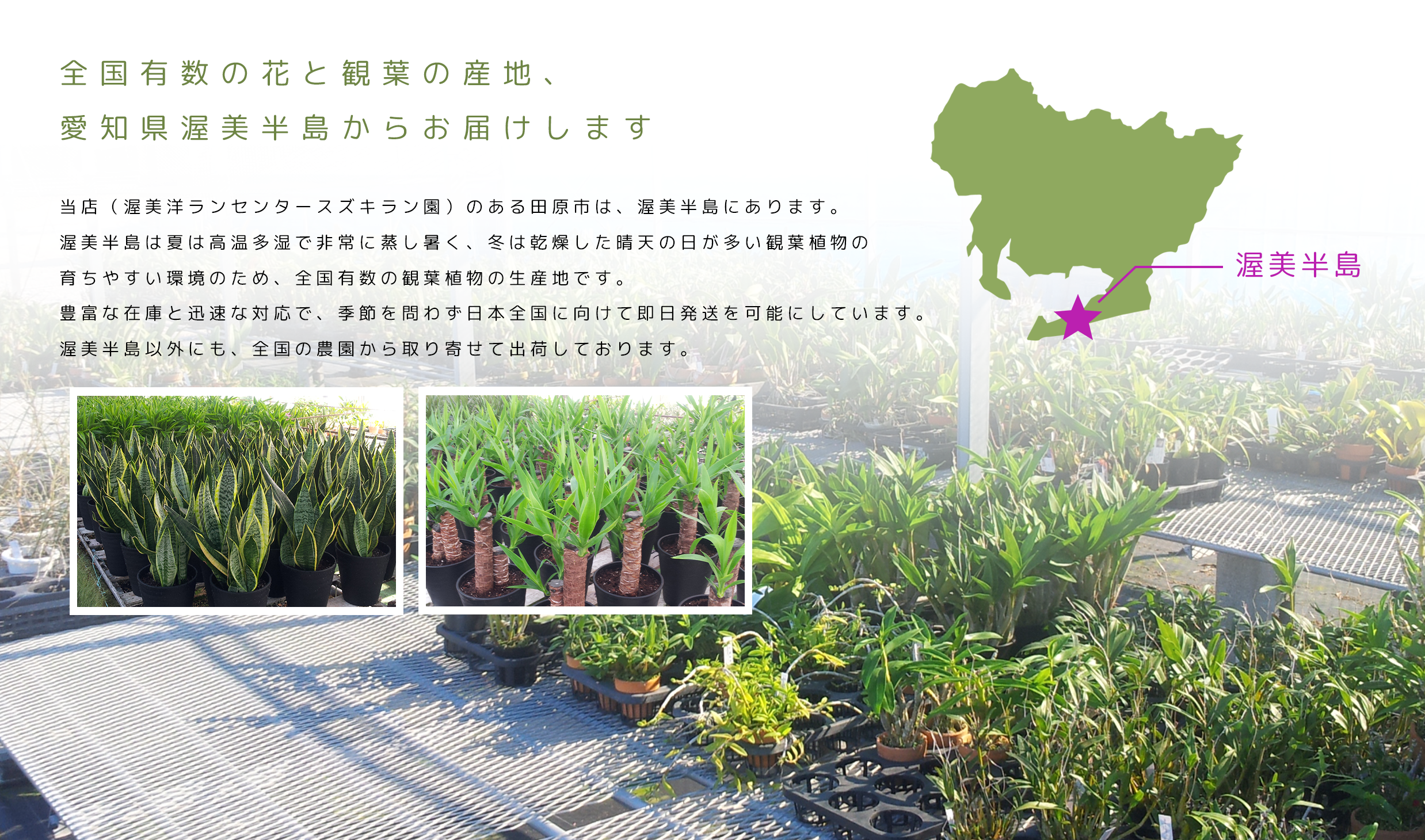 スズキラン園では全国有数の花の産地「愛知県渥美半島」で育てた
