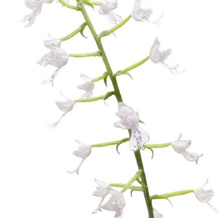 【品種の説明】 珍しい地性蘭ステノフロッチスの交配種。薄ピンクの小輪の花を多数つける。栽培は容易。