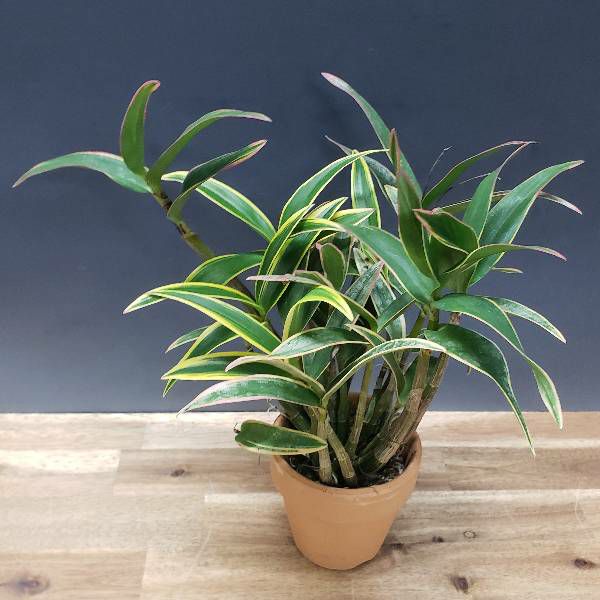 他の画像を見る 【花なし株】 デンドロビューム ロディゲシー バリエガータ Den.loddigesii var. variegata ‘K-17’ ツメ斑 原種 2.5号鉢 10cm 開花サイズ(BS) ¥ 5,500 税込 カートに入れる お気に入りに登録する