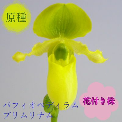 花が順々に咲き続けます 【花付き株】 パフィオペディラム プリムリナム Paph.primulinum 原種 3号鉢 15cm 開花サイズ(BS)