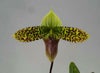 ペタルの点が特徴のパフィオ 【花付き株】 パフィオペディラム サクハクリー Paph.sukhakulii 原種 2.5号鉢 20cm 開花サイズ(BS)