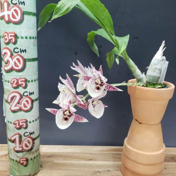 オレンジ色のリップの縁取りが特徴 【つぼみ付き株】 セロジネ メモリア フクバ Coel.Memoria Fukuba 交配種 芳香あり 3号鉢 25cm 開花サイズ(BS) ¥ 3,850 税込 販売を終了しました。 在庫切れ 詳細を見る お気に入りに登録する
