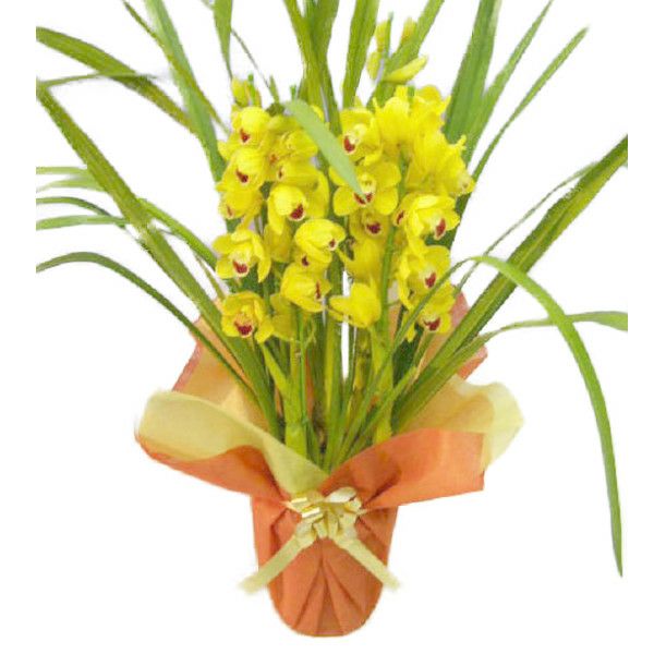 送料無料 シンビジューム イエロー 直立 5本立ち ラッピング付き 耐寒性