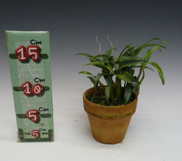 他の画像を見る 【花なし株】 デンドロビューム ロディゲシー バリエガータ Den.loddigesii var. variegata ‘K-17’ ツメ斑 原種 2.5号鉢 10cm 開花サイズ(BS) ¥ 5,500 税込 カートに入れる お気に入りに登録する